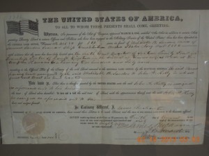 The original deed to the Old Stone Building; deeded in 1860 by President James Buchanan to Mehitable H. Sanders, and passed to John A. Kelly.