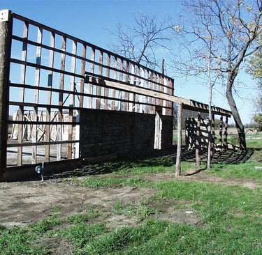 Several years ago Gary visited Jerome, Arizona. There was an old museum there that had a non-operable gold mine, a saw mill, hundreds of old rusty implements, and a variety of small animals running around for children to pet. Gary's dream is to have a similar place where people – young and old – can see and experience the past. Ever since envisioning the project, Gary has been collecting blacksmith tools that could be displayed in the building. So far he has two forges (neither are a down draft forge of the type that was used in the Old Stone Building), a line shaft (out of an old blacksmith shop in Clinton, Kansas), a disk sharpener (from a blacksmith shop in Shelbyville, Illinois), and a power hammer (from Robert Brink, made in St. Louis in 1901). He also has several old farming implements, including a 1941 John Deere B styled tractor and a 1927, 125 hp, LeRoy 4 cylinder engine to run the saw mill.
